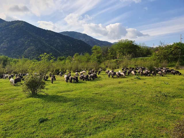 Отглеждаме още и Каракачански кучета, които са най-добрата защита на нашето стадо от множеството нападения от вълци и мечки. Към настоящия момент фермата разполага с три битови кошари, които са изградени на различна надморска височина, при отлични природни условия. Първата база е разположена в непосредствена близост до гр. Кресна, в местността „Солунско дере“ (на 150 м. надморска височина), където е и наи-подходящо за зимуването на животните.